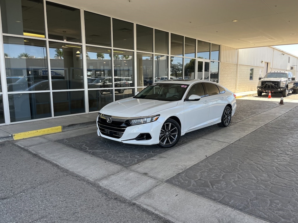The 2022 Honda Accord Sport is a benchmark in the midsize sedan segment, blending a sophisticated, coupe-like silhouette with class-leading interior space. This specific unit is powered by the 1.5L VTEC Turbocharged engine , which provides a responsive and fuel-efficient driving experience. The Sport trim is visually distinguished by its aggressive 19-inch machine-finished alloy wheels with black inserts, a gloss-black decklid spoiler, and dark chrome grille accents. Inside, the cabin features a unique blend of cloth and leatherette upholstery with sport pedals and a leather-wrapped steering wheel. As a 2022 model, it comes standard with an 8-inch high-resolution touchscreen featuring Wireless Apple CarPlay and Android Auto , making it one of the most technologically current sedans on the road. Technical Specifications Category Details Engine 1.5L 16-Valve DOHC VTEC Turbocharged 4-Cylinder Performance 192 hp @ 5,500 rpm / 192 lb-ft torque @ 1,6005,000 rpm Transmission Continuously Variable Transmission (CVT) with Paddle Shifters Drivetrain Front-Wheel Drive (FWD) Fuel Economy 29 City / 35 Highway / 32 Combined MPG Wheels 19-inch Machine-Finished Alloys with Black Inserts Trunk Space 16.7 cu. ft. (Class-leading) Key Features & Safety Connectivity: 8-inch Display Audio Touchscreen with 8 speakers and wireless smartphone integration. Honda Sensing Suite: Standard Collision Mitigation Braking, Road Departure Mitigation, Adaptive Cruise Control with Low-Speed Follow, and Lane Keeping Assist. Sport Amenities: 12-way power drivers seat (including 4-way power lumbar), LED fog lights, and chrome exhaust finishers. Cabin Comfort: Dual-zone automatic climate control and a 60/40 split-folding rear seatback.